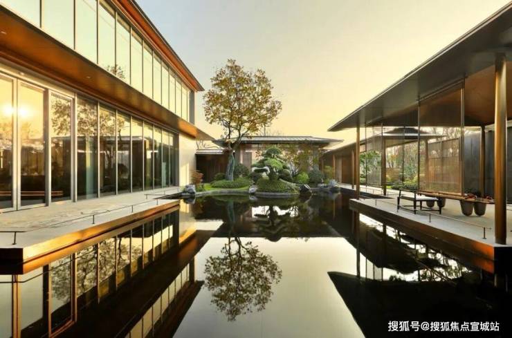 你看,坡顶飞檐、阶梯入门、青松绿植、格栅围墙……高门大户般的门头,流转着东方气韵,再现风雅之境。