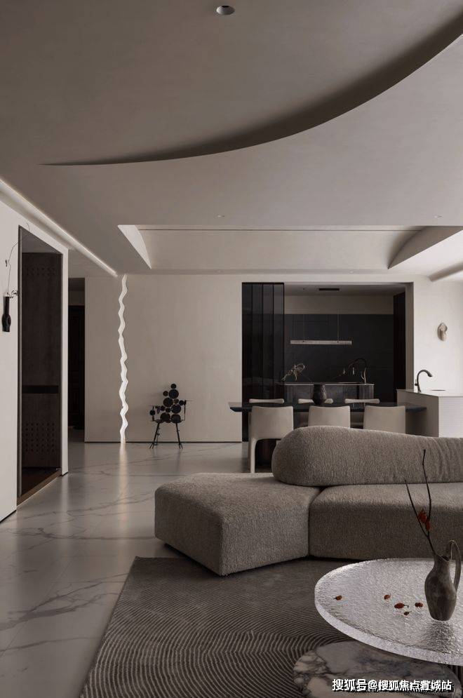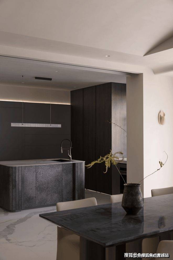 高级黑的纯粹静谧,营造出沉稳且个性的现代质感,松软的布艺家具、粗粝的陶器、永生的植物等简素物体,共同点缀着室内空间,创造出一种可感知、充满包容性的场域。
