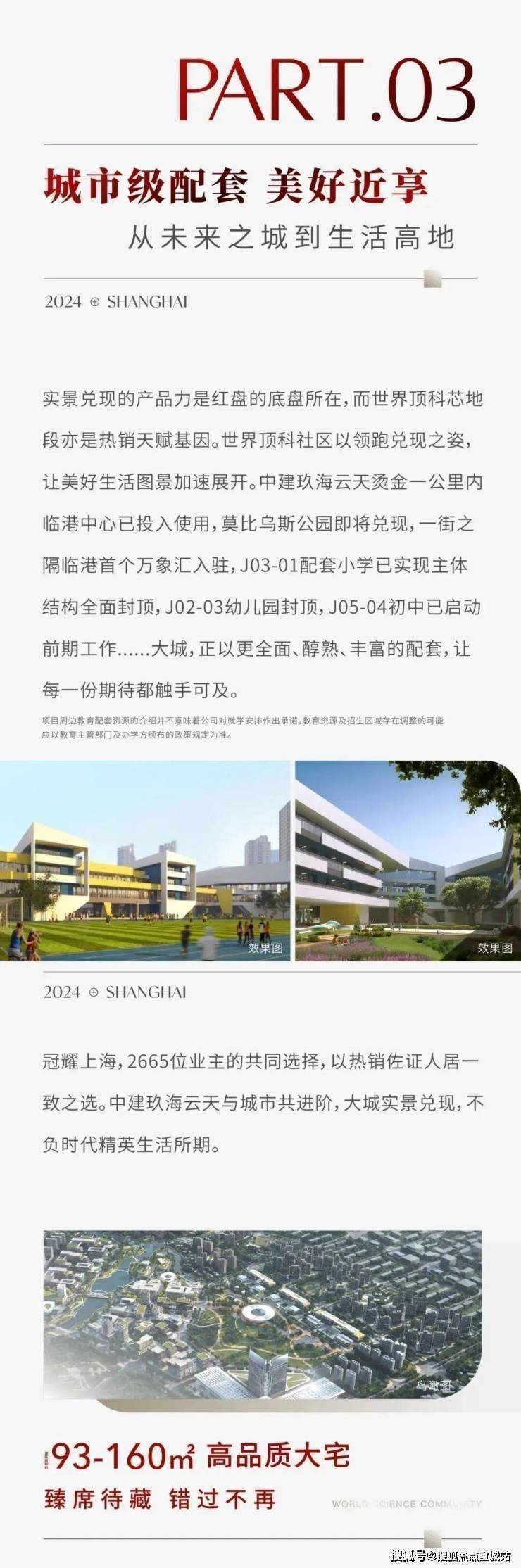 城市级的配套规划,是美好生活的标尺,丈量丰盈日常。世界顶科社区·玖海云天,于世界顶科社区核芯,享“国际化、定制化的高端社区”的世界顶科社区未来(信息来源:《上海市临港新片区PDC1-0401单元顶尖科学家社区控制性详细规则》),建筑面积约26万方海港中心项目(暂命名)商业(信息来源:;临港管委会)一街之隔,万象繁华举步即享。