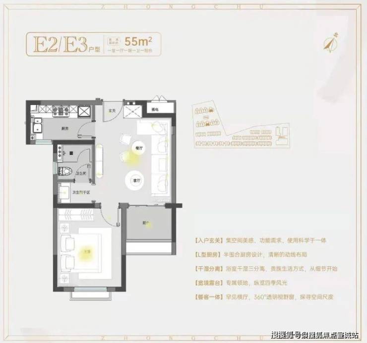 建面约55㎡1房1卫户型,低总价优质上车小户型,做到了双开间朝南+卫生间干湿分离+卧室带飘窗+客餐厅相连,小而美的一个户型。春申阳光售楼处营销中心:400-8618-004春申阳光售楼处电话/地址☎:400-8618-004(开发商热线)