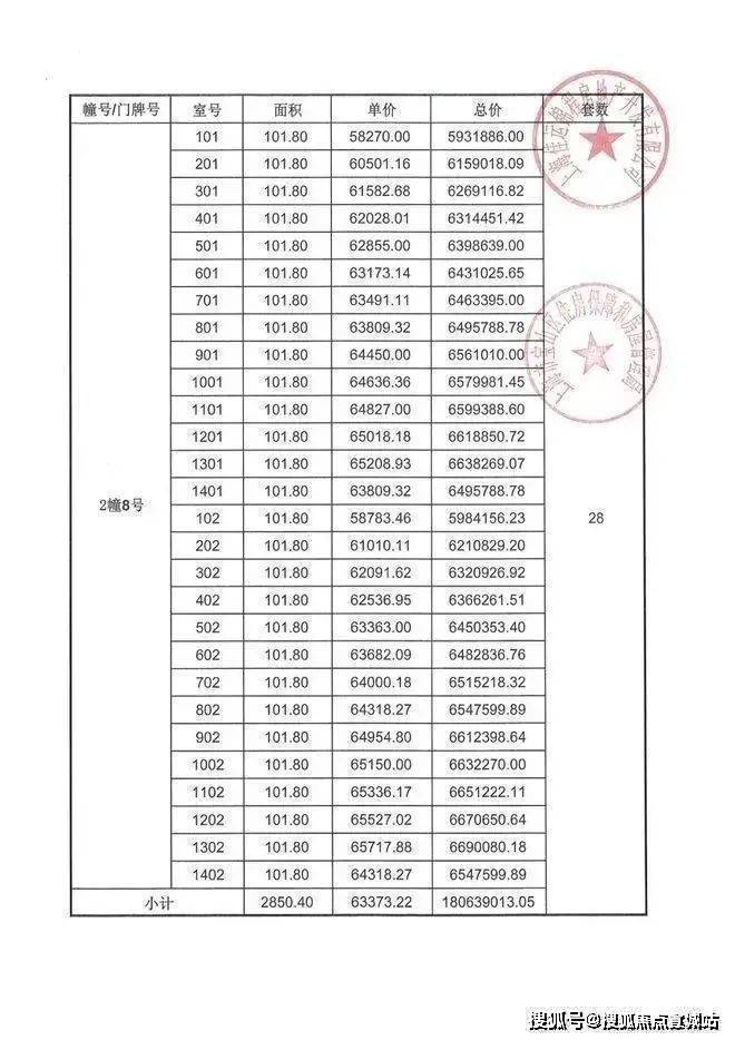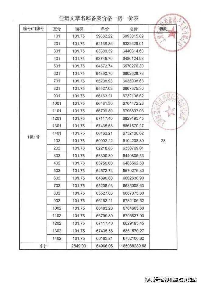 项目一房一价表▼