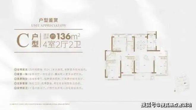 约136㎡户型南向面宽约14.2米!