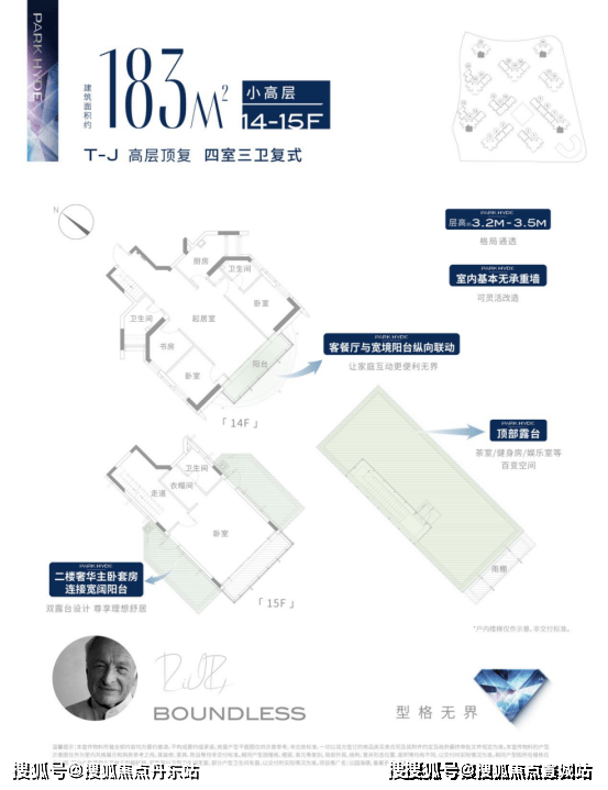 183㎡高层复式户型,四室三卫,套总价1140-1169万(套均总价1154万);