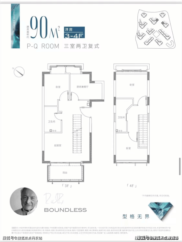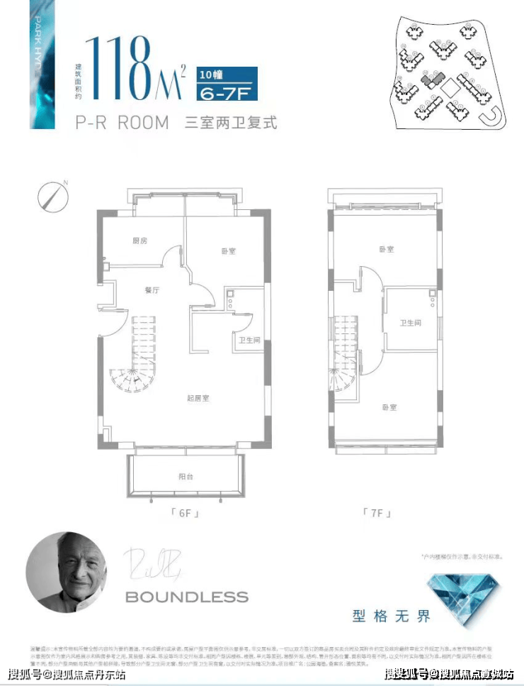 171㎡高层复式户型,四室三卫,套总价1180万;