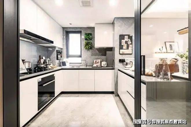 厨房采用了欧洲一线品牌古洛尼三件套油烟机、燃气灶和洗碗机,弗兰卡龙头水槽以及威及达的烤漆定制橱柜,还有公牛的可移云烟插座。