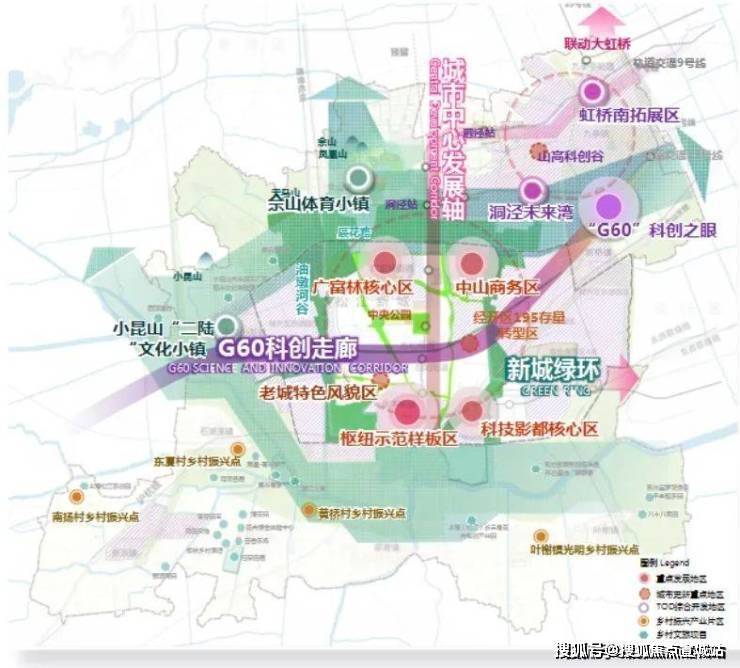 枢纽之城:上海西南门户、9台23线松江南站交通枢纽之城,打造“站城一体,四网融合”
