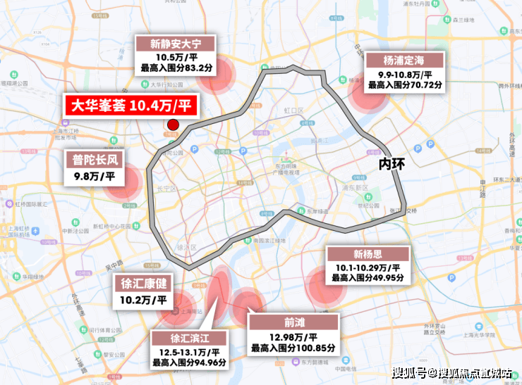 放眼整个上海10万+单价的新房, 大华峯荟的位置贴近市中心 ,不管是交通便捷程度还是生活资源浓度,都更胜一筹。再看看周边的二手房,房龄5年左右的次新超高层小区,成交均价普遍都在11万-14万之间。