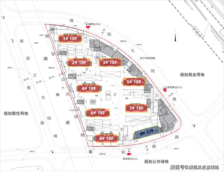 普通商品房用地,用地面积约39769㎡,容积率2.2,限高60米;据规划显示,规划12栋可售住宅,总高17-18层,总户数约901套,容积率2.2,非人车分流,车位比约1:1.2。
