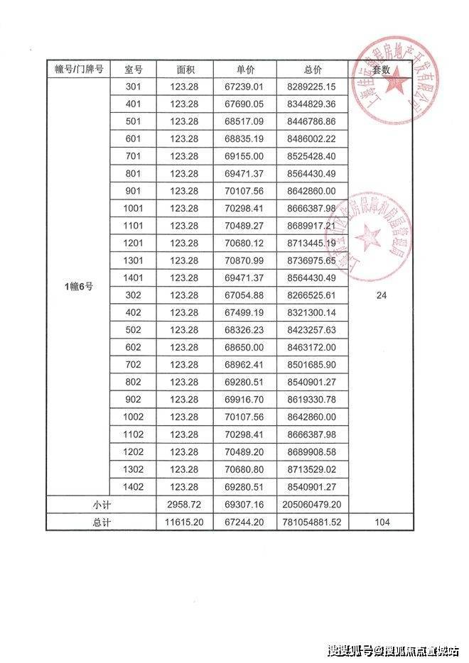 项目一房一价表▼