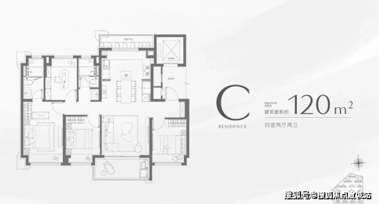 谁不想拥有大横厅,百平米内也能做到!招商中旅·揽阅的104平户型可以说是满满的诚意品质担当。