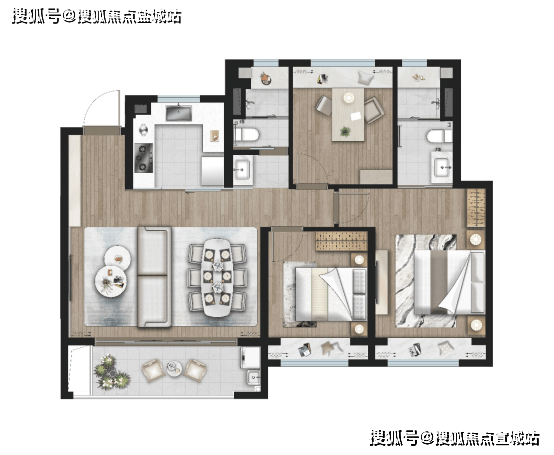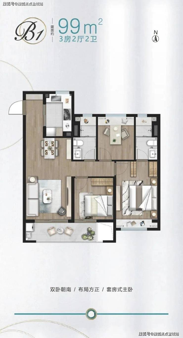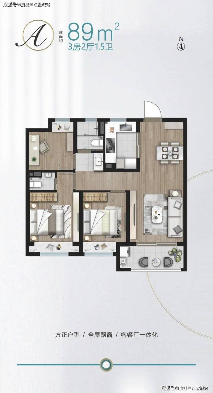 建面约89㎡做3房,功能性上就占尽先机,没想到项目还有1.5卫配置,主卧升级套房,真正实现一步到位!
