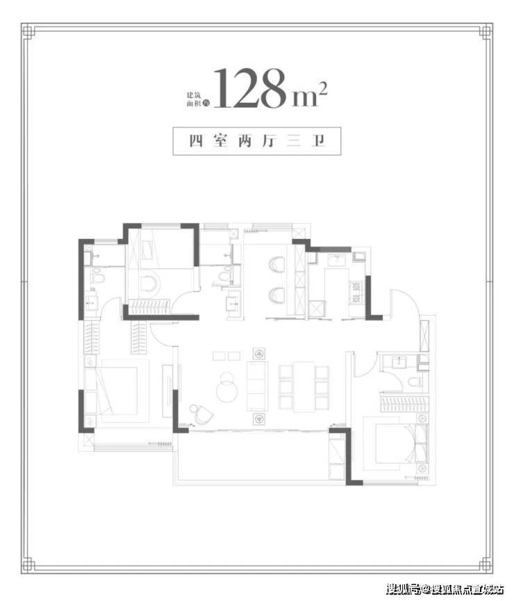 洋房户型-臻雅建筑面积约128㎡4室2厅3卫