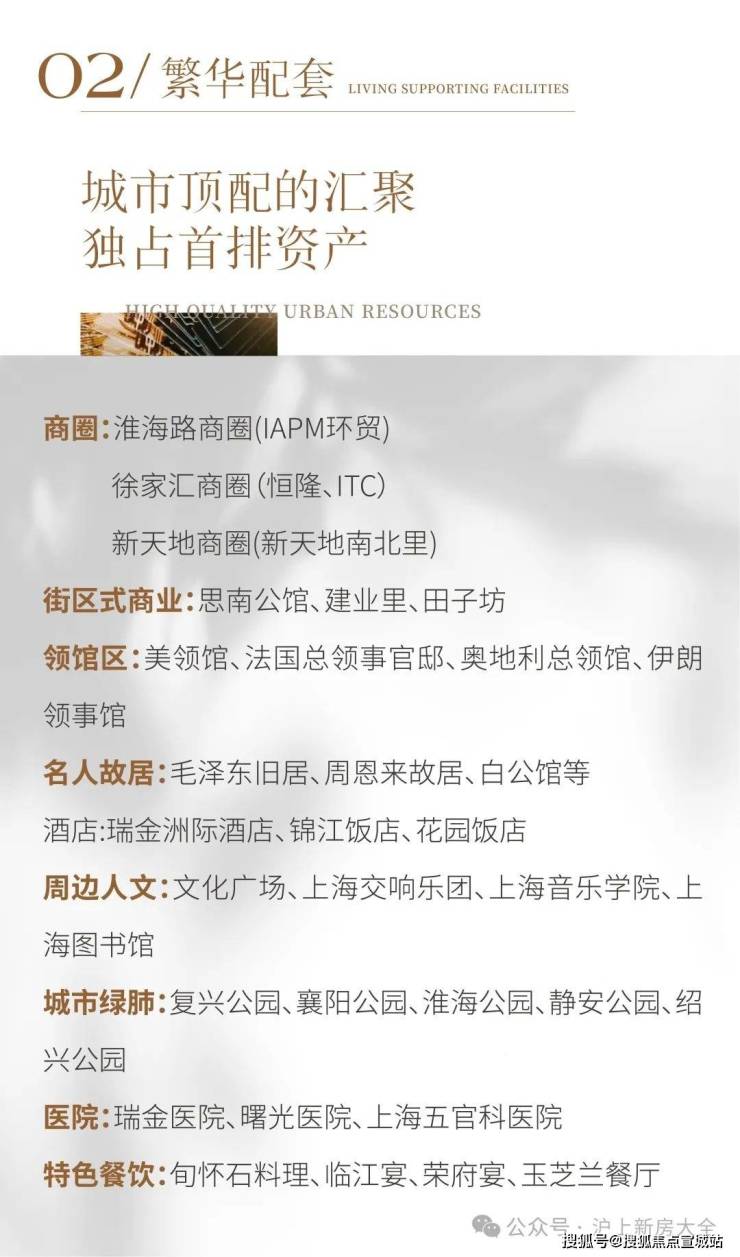 项目特色:地处百年衡复风貌区,位于淮海路商圈与新天地核心区域,周边名人故居众多,人文底蕴深厚。