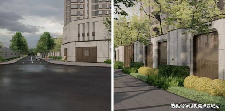 一进长约140米的超长城市界面!包括 长约60米度假酒店式大门, 精心设计的社区周围边界。