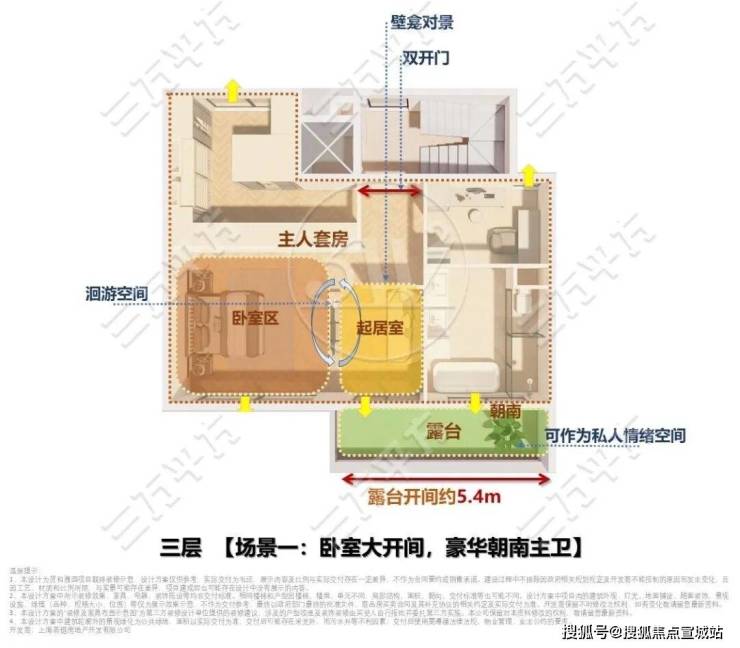【场景一:卧室大开间,豪华朝南主卫】注重精致度假感的主卧布局方案