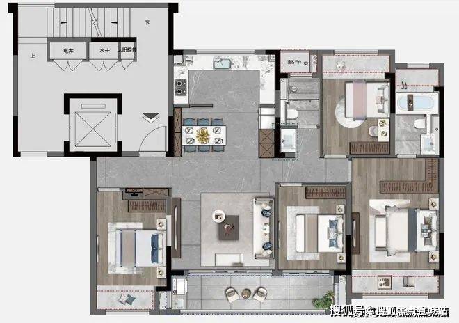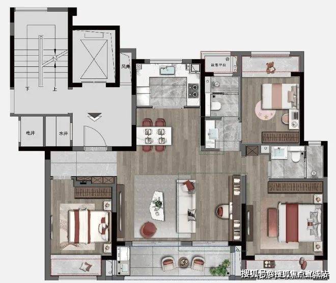 约143㎡洋房户型:4房2厅2卫(两梯两户)