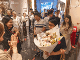 工作人员热情地为到访客户登记信息,细心地回答客户的每个问题,并引导客户填写认筹协议书。