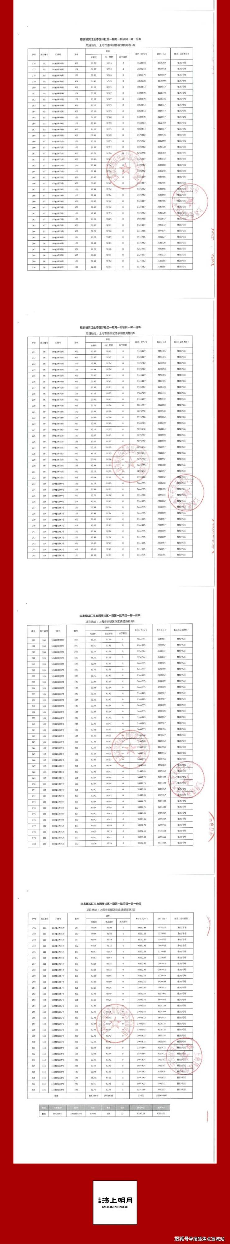 一房一价表公示: