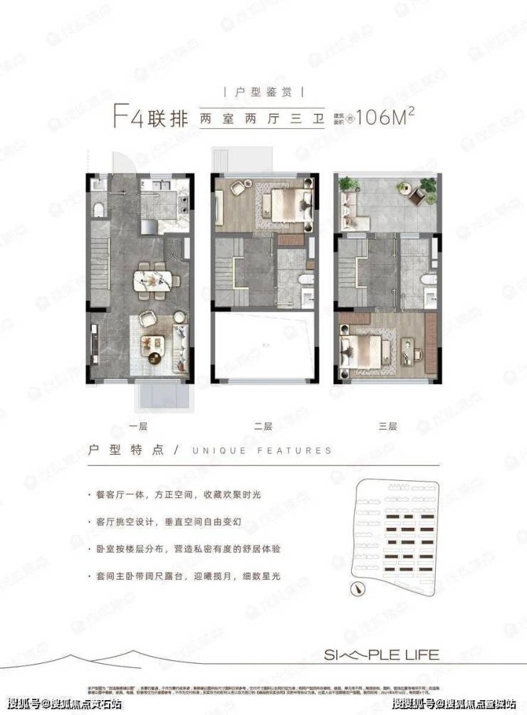建面约98m²岛居联排美墅