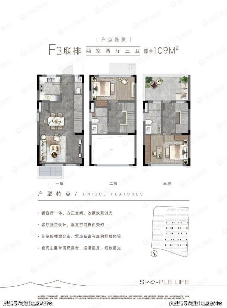 联排别墅层高3.0米,毛坯交付。