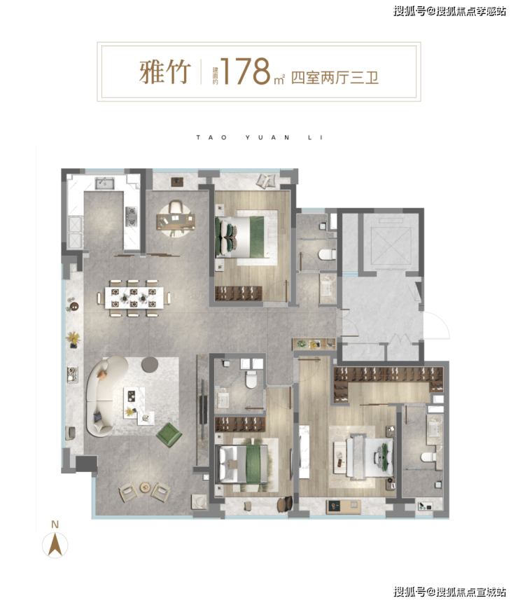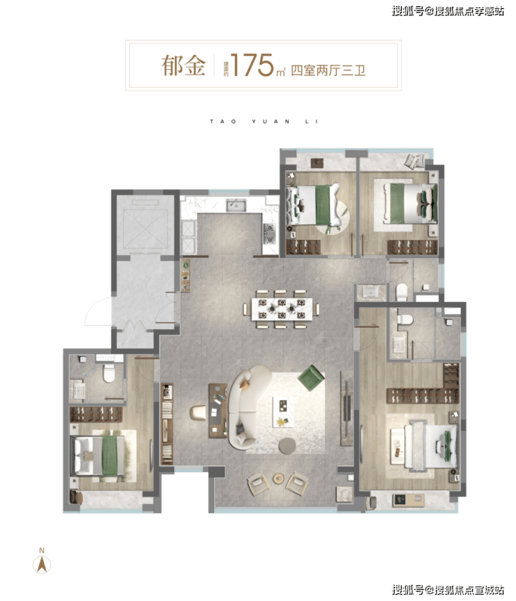 中环·桃源里✪✪售楼处电话✅✅:400-8123-224☎️☎️建面约175㎡四房户型▼