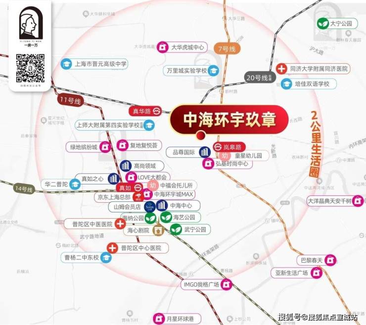直线距离内环约1km,与静安一线之隔,赋予了真如先天的地段禀赋;