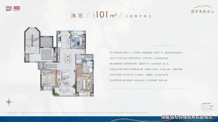 除了叠墅外,全社区仅4幢建面约101㎡沐光全景小高层,通过前瞻排布,几乎做到了户户景观无遮挡。