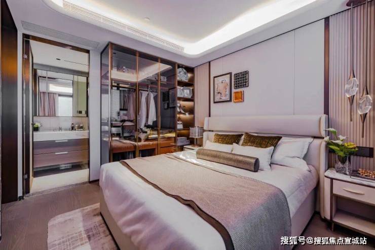 二楼主卧采用媲美高奢酒店的双衣帽间套房设计,进一步保障了主人的私密生活。