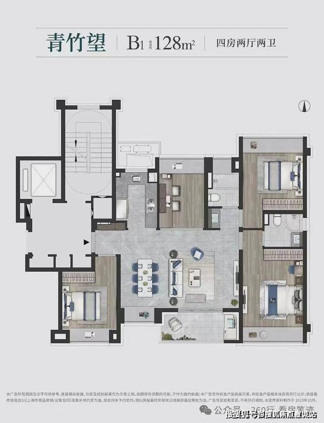 建面约128㎡舒适四房