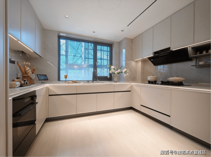 厨房的北侧台面全部都采用了飘窗,并且在飘窗上假设了定制尺寸的大单槽,非常实用。