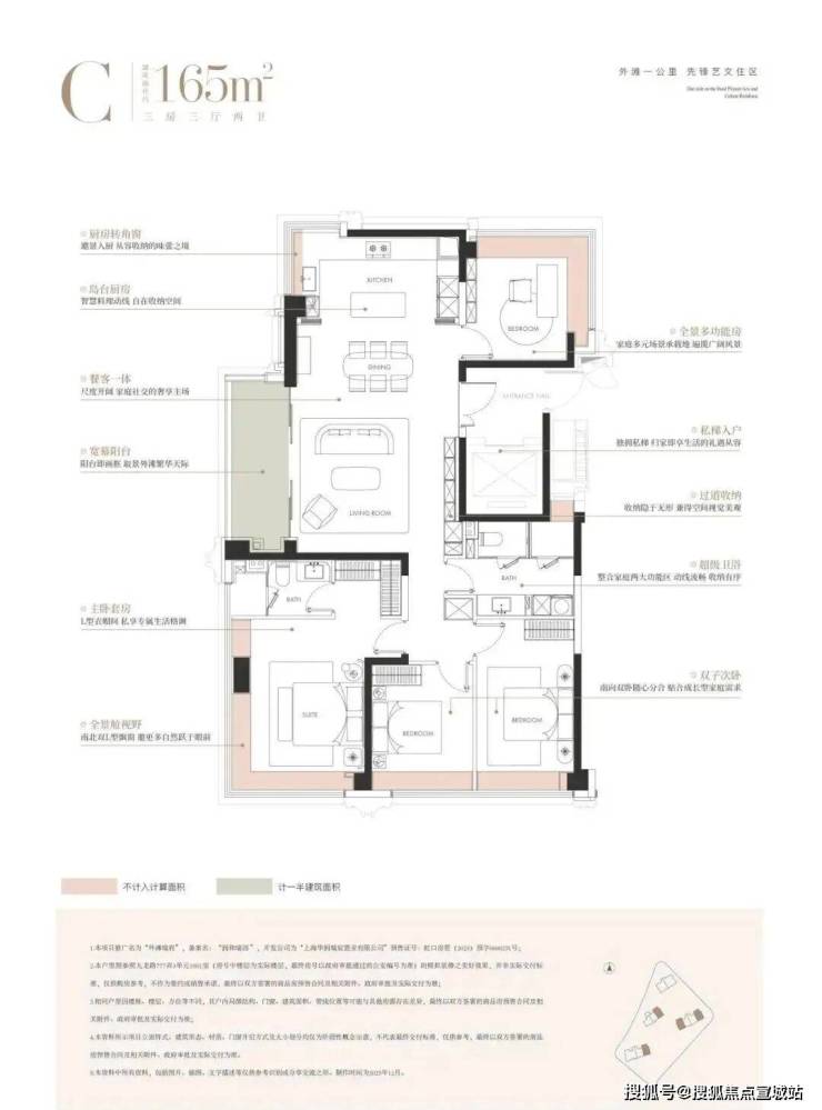 因此,外滩瑞府在建面约165㎡户型中创新推出三四房灵活定制体系。
