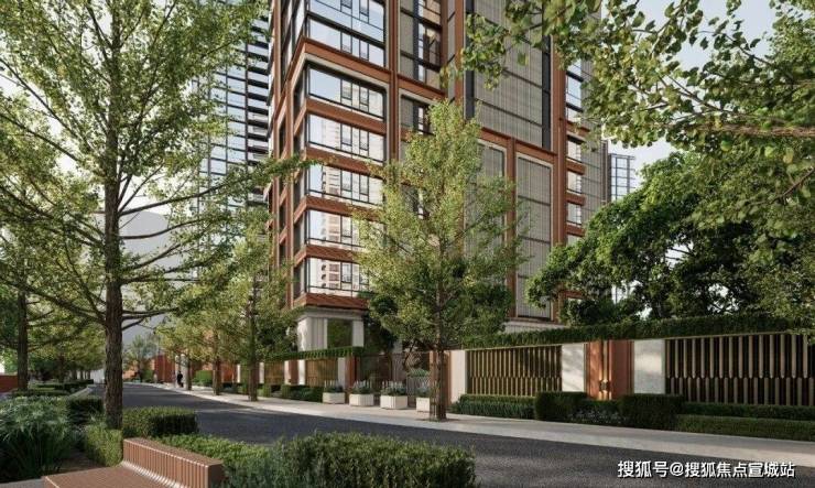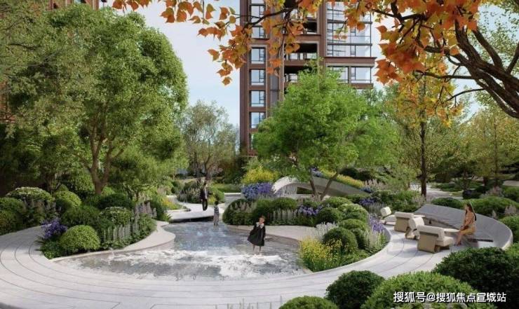 社区景观上,突破市区项目常见的「兵列树阵式」布局,通过建筑楼体的精密偏转,形成罕见的围合式社区形态。