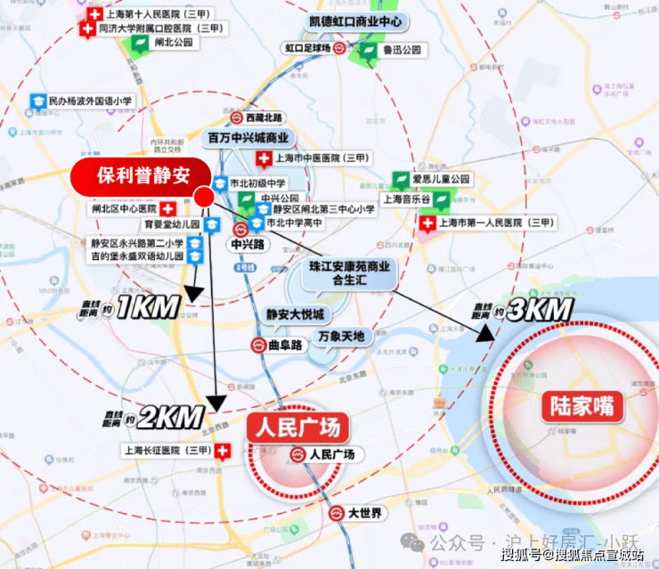 而项目到外滩和平饭店的直线距离正好是约3公里!妥妥的城心烫金地段!
