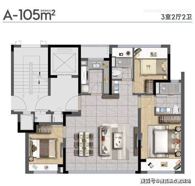 105㎡四开间朝南,大横厅设计,主卧套房。