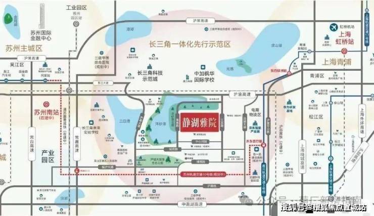 距苏州南站仅7公里,通车后15分钟到虹桥。驾车10分钟到青浦,30分钟到虹桥。驾车10分钟达到上海17号线西岑站,规划苏州地铁10号线穿行而过。