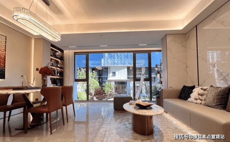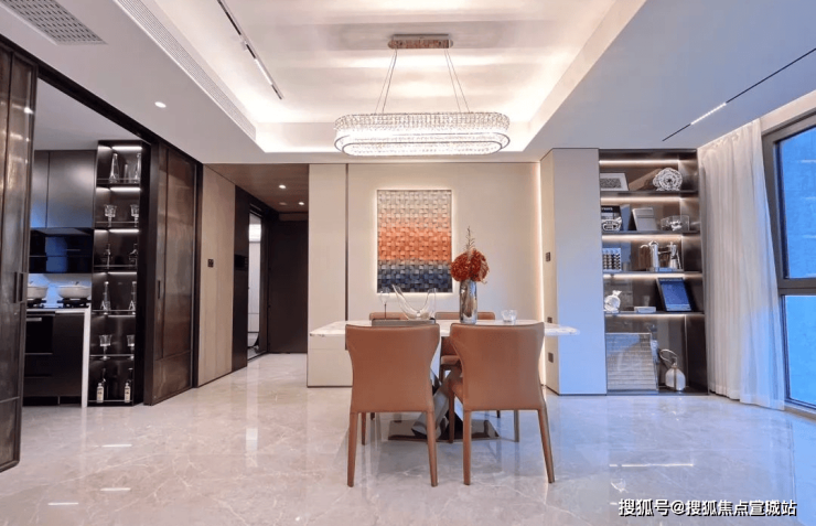 就拿餐厅而言,这个户型可以放下一个5-6人的圆桌,可以满足一大家子围坐大圆桌吃饭的需求。