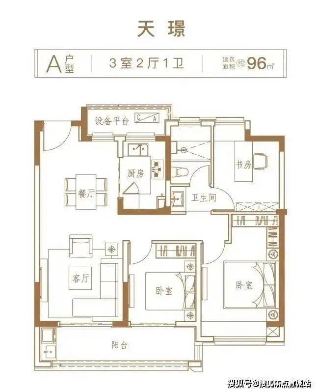 但该户型的优势是客厅空间较大,还能设置一个开放式书房,看起来较为大气。
