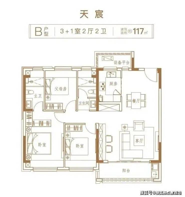 项目户型虽然标注为3+1房,不过仅有三个房间可作为卧室使用。