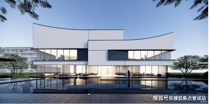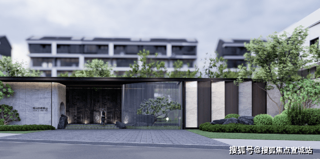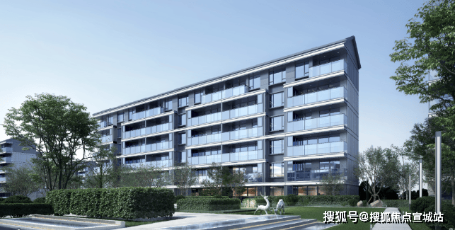 建筑风格:公建化立面 + 大面积蓝灰玻璃 + 金属线条,现代与苏式融合,简约大气