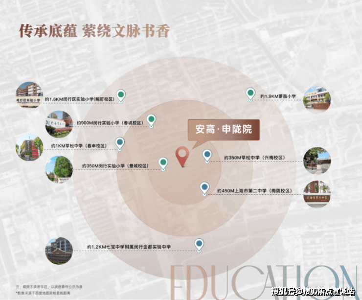 直线距离闵行区实验小学(景城校区)190米,直线距离莘松中学(兴梅校区)200米,还有闵行区实验小学、莘松中学,延续浓厚的书香文化底蕴。