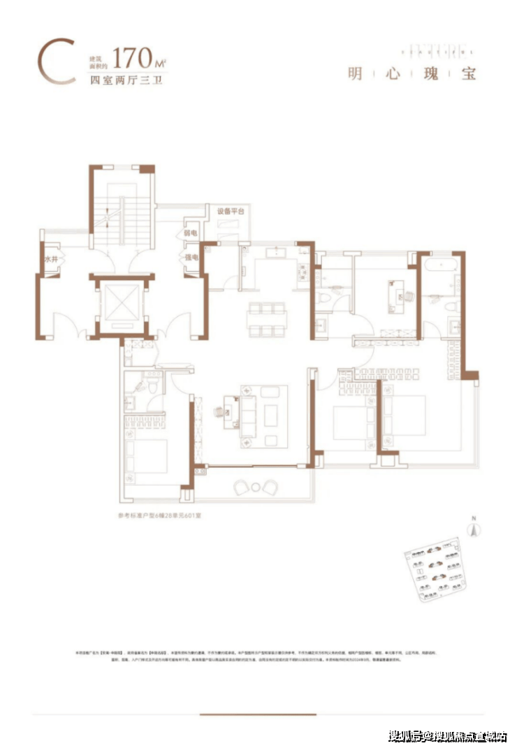 安高申陇院建面约170㎡四房两厅三卫,以突破性尺度成就区域改善之作,四房空间张弛有度,这不仅在于其房间数量,更在于对每一寸空间的规划所带来的整体舒适性与尊崇感。约79-80%的高得房率,让住宅的实际使用空间显著扩容。