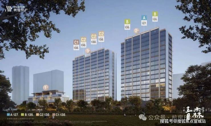 园区涵纳2幢17层的高层,南低北高,保证最大尺度的秘境花园。无雨归家,100米风雨游廊,贯穿建筑与生活;四面全铝板+大尺度玻璃,打造对称中又有韵律变化的立面,呈现高辨识度的森系设计,在光影流转间,赋予空间优雅的生命力,且与森系园林融合一体、相得益彰。