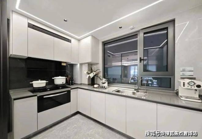像空调新风地暖“豪宅三大件”齐备,比如中央空调甄选东芝品牌;厨具方面,采用方太的蒸烤一体机、空调油烟机,内嵌冰箱甄选卡萨帝品牌;客厅岩板背景墙也是交付标准;