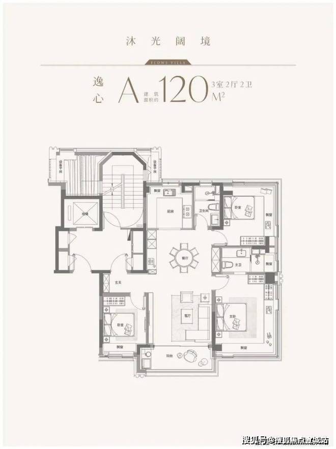 建面约120㎡小高层:三室两厅两卫