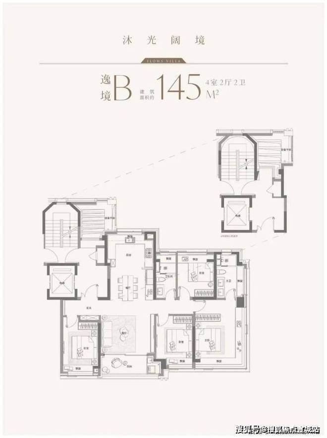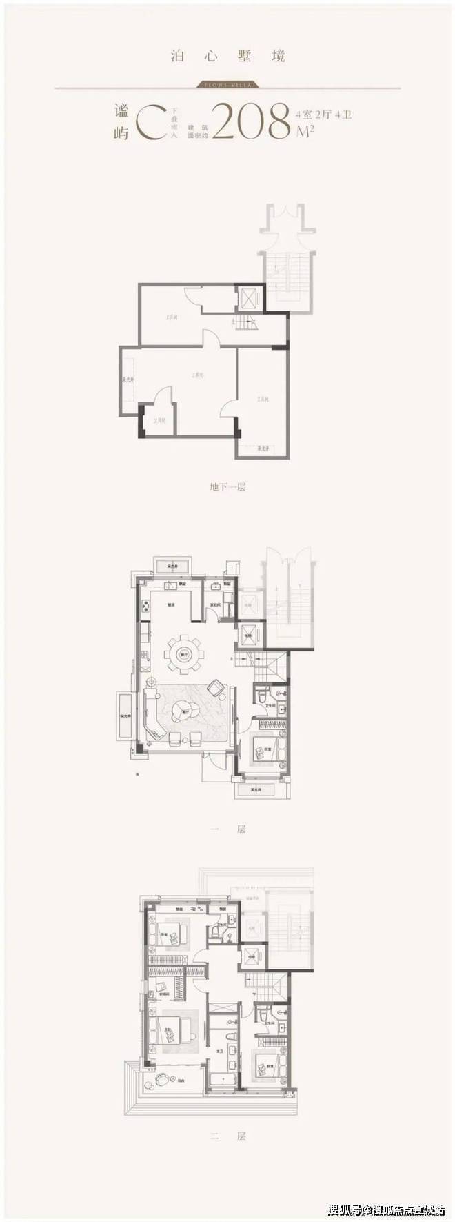 建面约208㎡下叠:四室两厅四卫