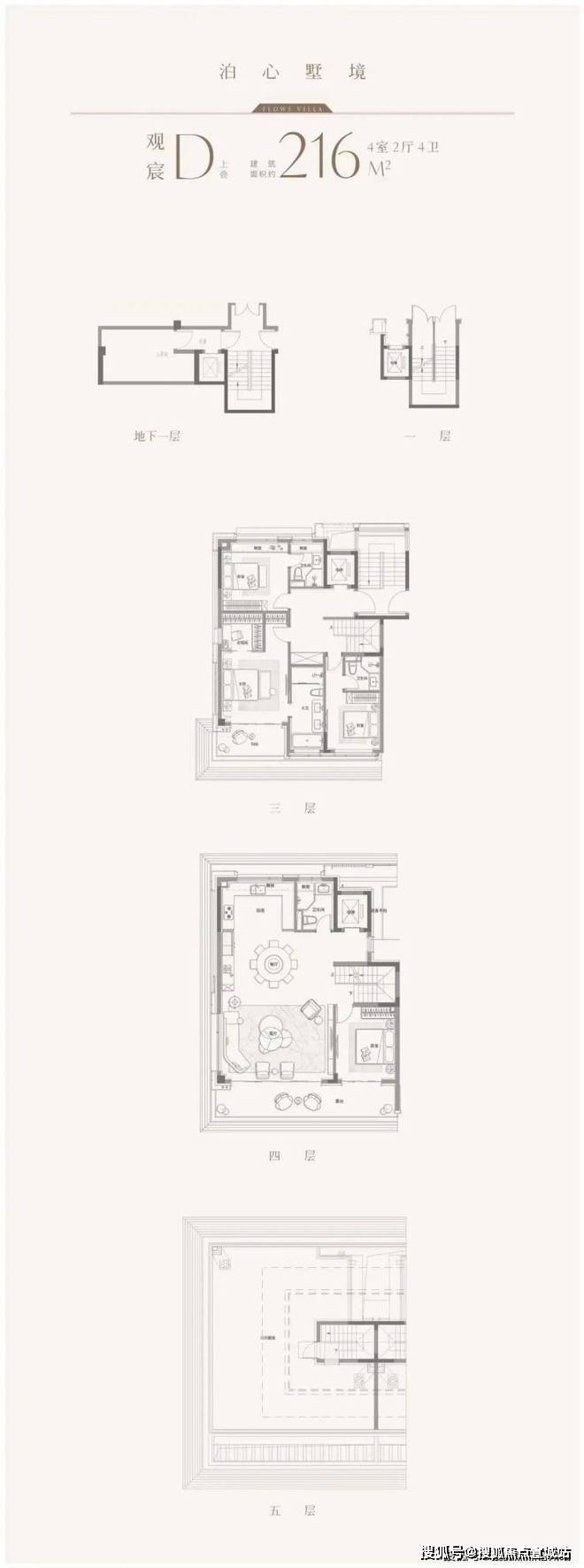 建面约216㎡上叠:四室两厅四卫
