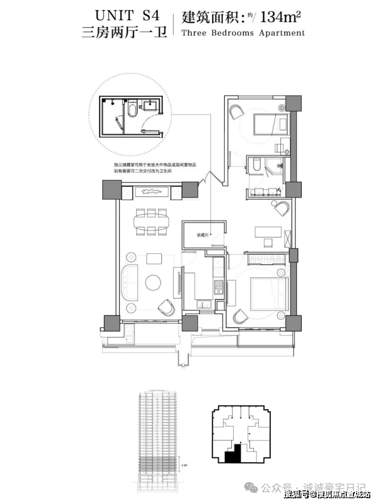 137㎡2+1户型南北朝向(一梯两户)⬇⬇