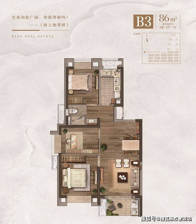 2.重要的是功能性还很到位,86平就做到3房,对小夫妻或者小太阳家庭,保证未来5-10年居住不落伍。