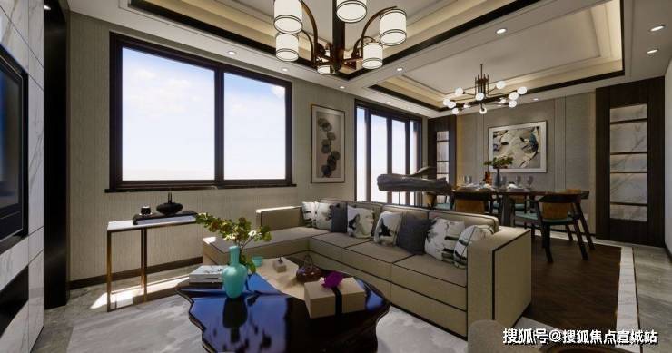 从产品形态上看, 建邦国宸府 打造的是金山新城极为稀缺的 墅居产品 ,由 高层+叠墅 组成,建筑风格为 现代中式滨海风格 。其透露出的中式意境和构图美学我们可以从景观绿化一窥端倪: