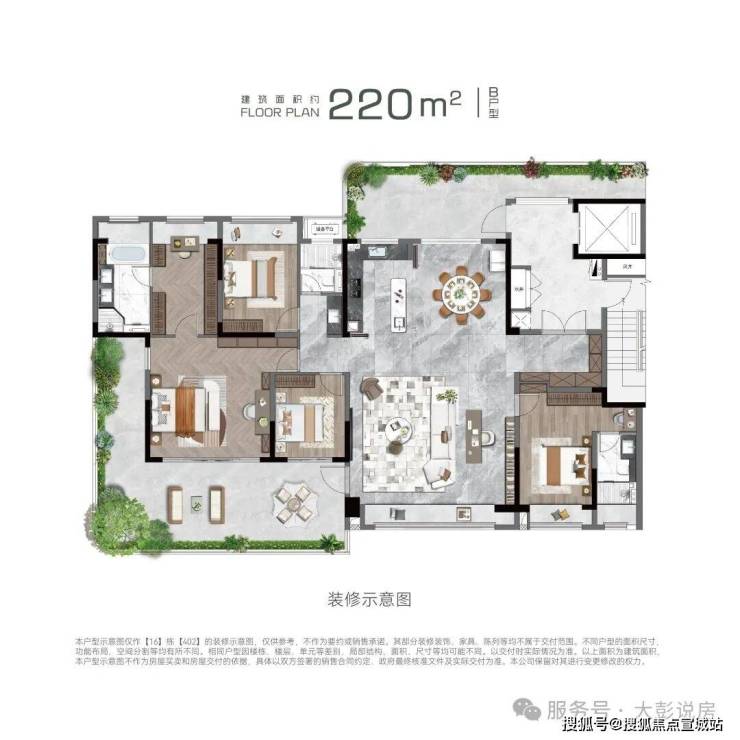 ·产品规划:建面约150㎡、185㎡、220㎡,户均约30-50㎡空中庭院